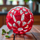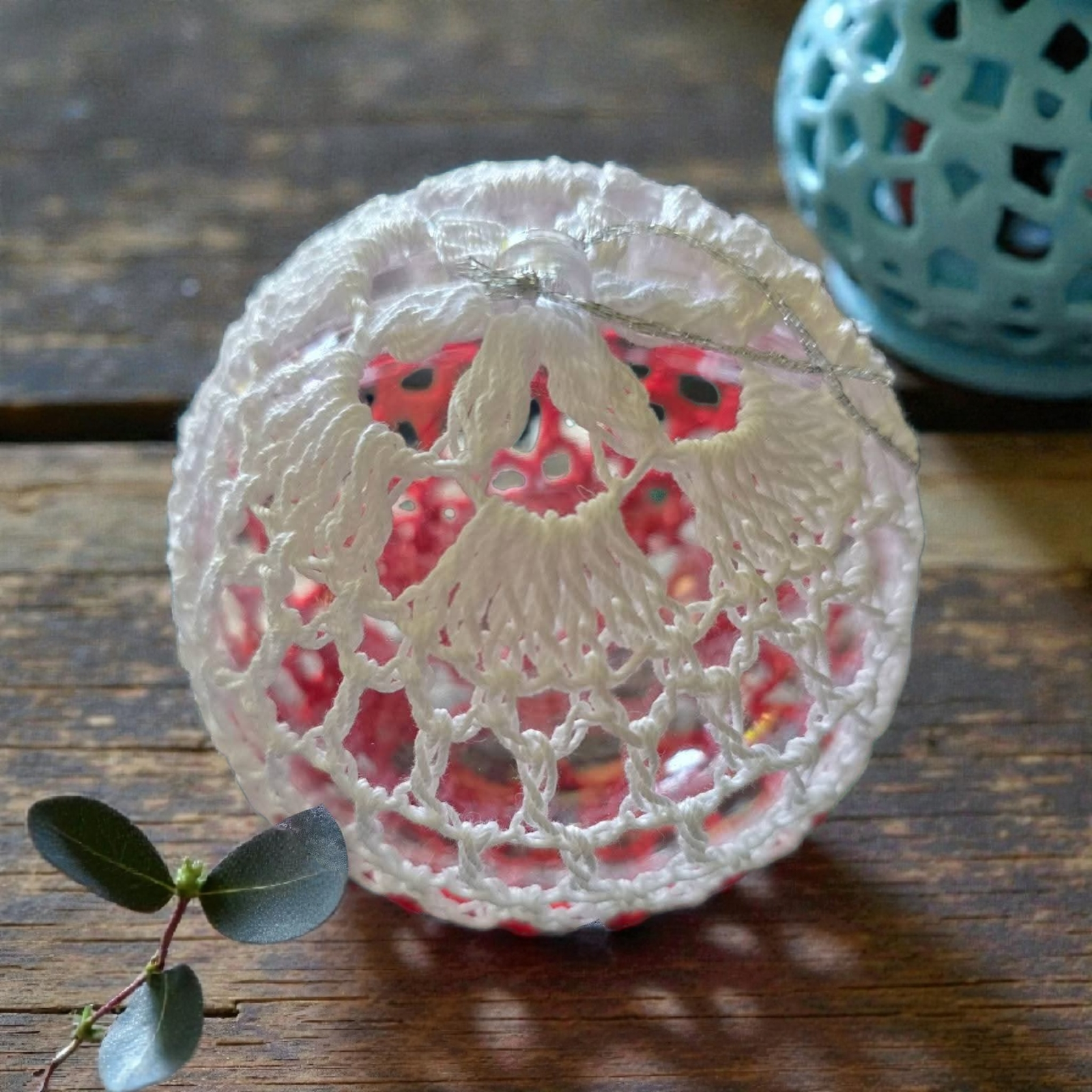 Crochet Acrylic Baubles in Red-White colors.